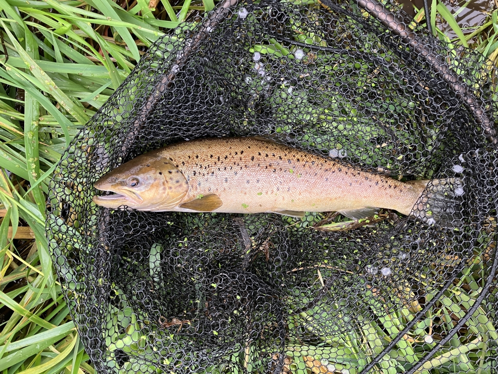 Fin fisk i de flotteste efterårsfarver. Vægten er ukendt, da den svømmer videre.