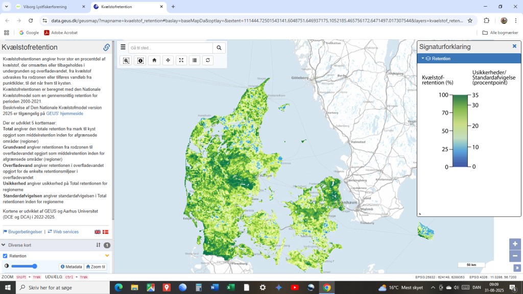 Der er udkommet et friskt kort med oversigt over det, der med et fint ord hedder "retention", på jævnt dansk "tilbageholdelse" af kvælstof.