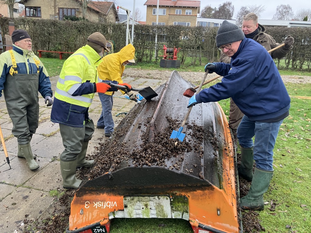 Der var masser af muslinger på bunden, men de blev fjernet med roejern, børneskovle, spader, koste og børster.