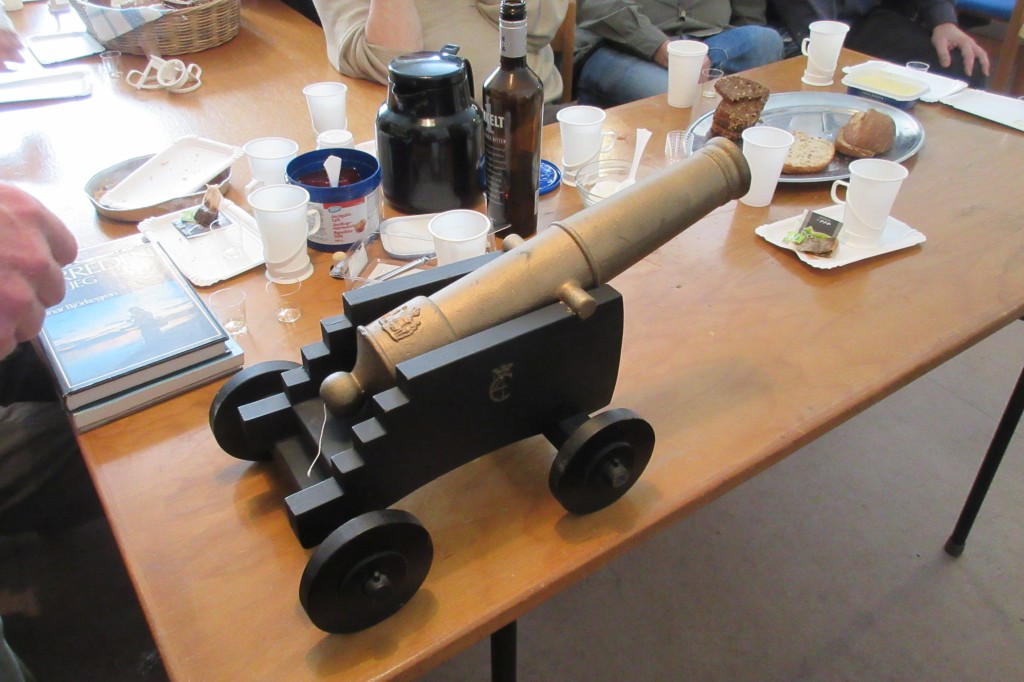 Og Egon fyrer kanonen af som tegn på, at havørredsæsonen er i gang.